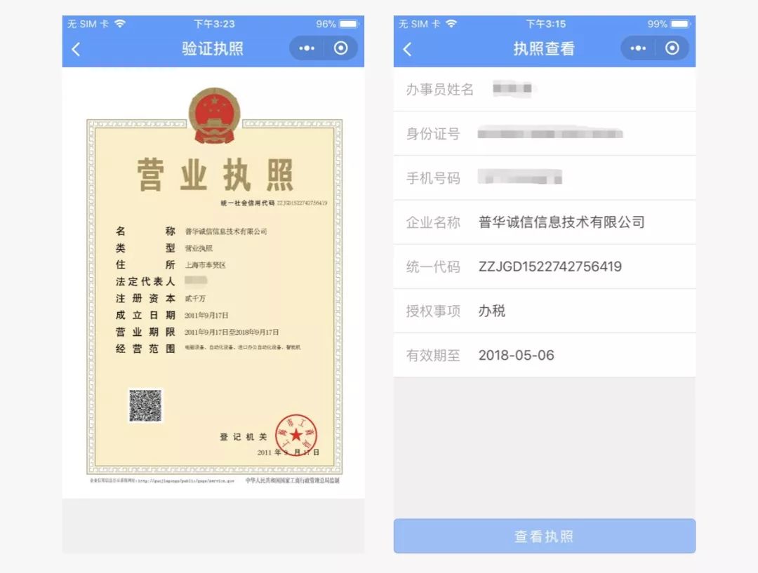 通过电子营业执照小程序,企业可以实现电子营业执照的出示,电子营业执照真伪性验证等功能。