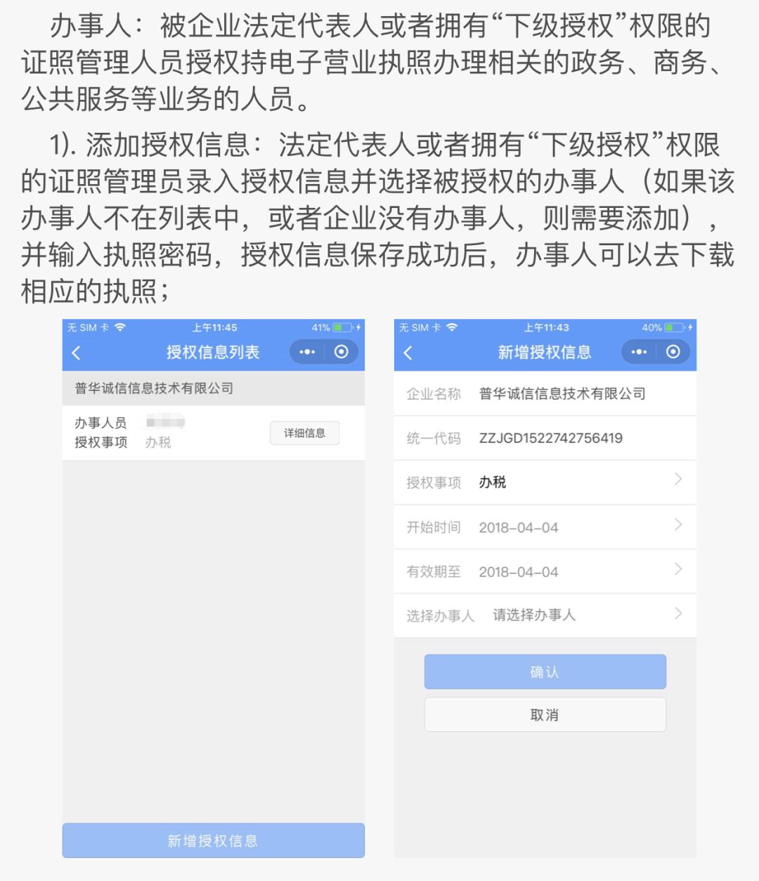 证照管理员:被法定代表人授权保管,持有,使用电子执照的人员。