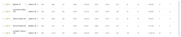 比如人群就不用多说了,缺其不可的程度。常见的智能拉新、浏览未购买商品访客、喜欢相似宝贝访客,包括自定义人群等,想要放大流量,带动产出提升那么要集中的做出高质高产人群。具体结合实际情况来调整设置。同理,关键词方面要集中的进行劣到优的筛选优化,注意提前规划好下一步操作所带来的效果控制。