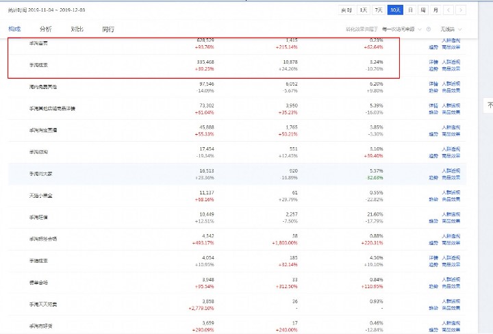 3.后期爆款高产阶段:这个阶段直通车的流量高位已经有了足够稳定的高频输出,那么流量的持续放大并保证计划产出,同时转化率也处于一个峰值,爆款单品形成,转化率也会维持在一定高水准。要使整体的产出有进一步的提升,那么除了持续稳定放大流量和控制精准,流量利用率也要重点去做,数据一般的词可以调整,在重点的引流成交词上着重投放,控制流量利用率,带动整体的高度转化,形成良性的高效率计划输出。